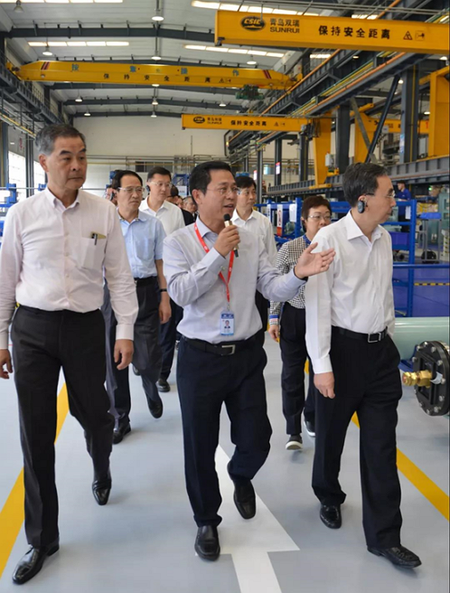 隨后,付洪田陪同梁振英一行領(lǐng)導(dǎo)在組裝車間進(jìn)行了參觀考察,介紹了公司先進(jìn)的壓載水管理系統(tǒng)生產(chǎn)流水線。梁振英仔細(xì)詢問生產(chǎn)流程和技術(shù)要求,對公司船舶壓載水管理系統(tǒng)的技術(shù)優(yōu)勢和產(chǎn)業(yè)規(guī)模表示認(rèn)可,希望公司繼續(xù)堅持“以科技和創(chuàng)新持續(xù)改善海洋環(huán)境”的宗旨,大力發(fā)展船舶壓載水處理、船舶廢氣處理等高科技海洋環(huán)保產(chǎn)業(yè)。付洪田感謝梁振英副主席對青島雙瑞公司的關(guān)心,表示將進(jìn)一步提升科技創(chuàng)新能力,帶領(lǐng)企業(yè)實現(xiàn)高質(zhì)量發(fā)展。