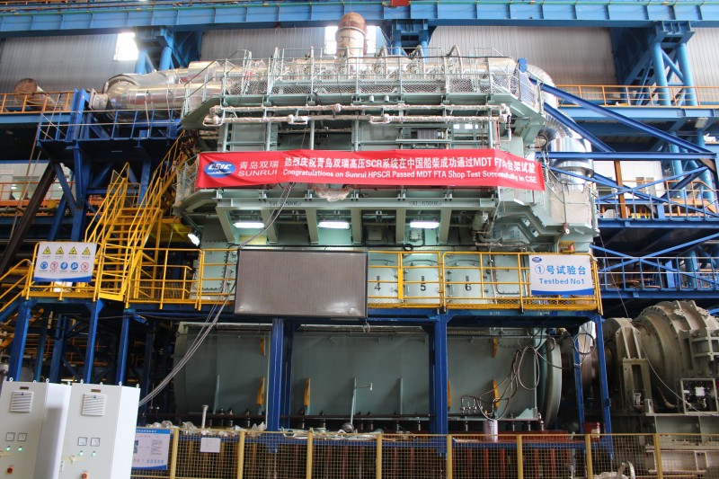 11月9日,青島雙瑞公司自主研發的船用低速機高壓SCR系統在中國船柴青島基地一次性通過MDT(曼恩柴油機與透平公司)的FTA臺架試驗,屬于國內首例。同時,該系統成功通過CCS、DNV GL、LR三大船級社Tier Ⅲ排放臺架試驗。