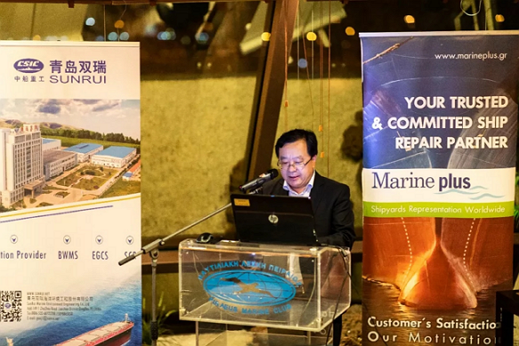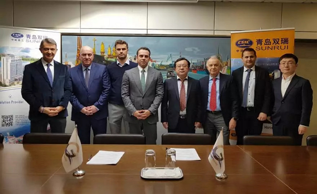 會上,青島雙瑞副總經理于江水致歡迎辭,回顧了公司近年來在希臘船舶配套設備市場取得的優異業績,衷心感謝希臘船東船廠對青島雙瑞的信任和支持。截至目前,公司已經與30余家希臘知名船東客戶建立了長期友好的合作,累計獲得了超過120條船的新造或營運船改造訂單。會后,于江水副總經理前往希臘船東公司進行拜訪,雙方簽訂了2船套的廢氣脫硫系統訂單。