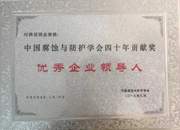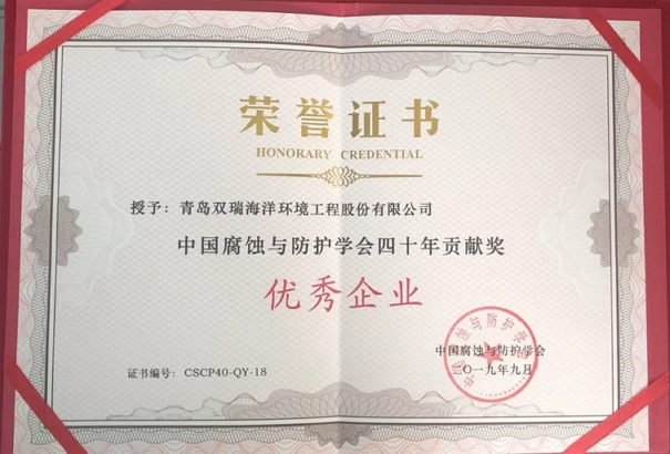 青島雙瑞榮獲“中國腐蝕與防護學會四十年貢獻獎―優秀企業”榮譽