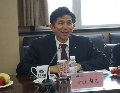 5月16日,日本最大船東公司日本郵船株式會社(以下簡稱NYK)常務副總經理小山智之一行到訪青島雙瑞公司。七二五所所長、青島雙瑞董事長劉艷江、所辦公室主任王君,青島雙瑞總經理付洪田、副總經理于江水參加接待。