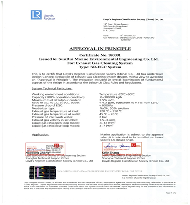 青島雙瑞船舶廢氣脫硫系統(tǒng)獲勞氏船級社認證