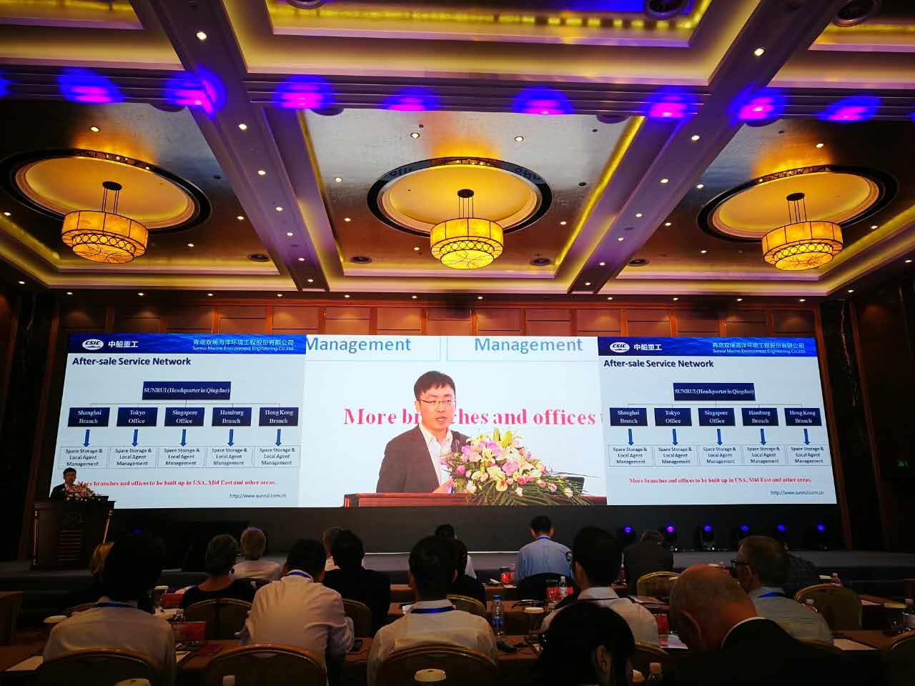 壓載水論壇邀請了來自10余個國家和地區的行業權威和頂級海洋專家,就全球壓載水公約要求及導則文件修訂進展、美國海岸警衛隊型式認可要求及進展、船東和船廠關于公約要求的關切以及ISO壓載水管理領域標準化進展等問題發表演講,對壓載水處理行業的現狀和未來趨勢進行探討。青島雙瑞公司作為壓載水處理廠商的優秀代表應邀出席論壇,船舶事業部工程師李夢森與參會專家分享了青島雙瑞公司在營運船壓載水改造方面的經驗,贏得了專家們的高度評價。
