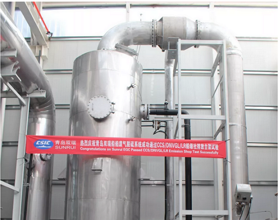 近年來,青島雙瑞公司緊抓船舶廢氣排放法規實施機遇,經過多年的潛心研發,攻克了多項關鍵技術,2018年12月,在CCS、DNVGL、LR船級社的見證下,青島雙瑞 SOxFreeTM船舶廢氣脫硫系統成功通過臺架試驗,產品性能完全符合IMO和船級社的各項規范,正式將該產品推向市場。新產品一上市便受到眾多船東船廠客戶廣泛關注,推出不到一個月,希臘知名船東公司即正式向青島雙瑞公司確認3條船脫硫系統加裝訂單。同時,公司船舶廢氣脫硫系統已成功鎖定20余條船的意向訂單。